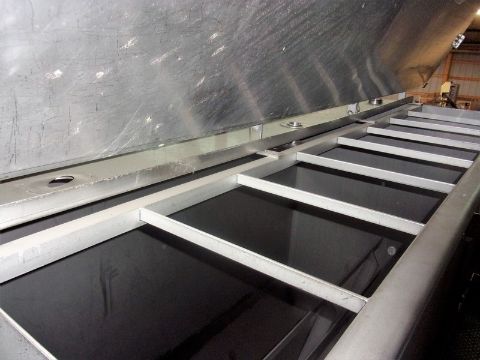 200 CU FT Stainless Steel Liquids/Powder Paddle/Ribbon Blender, (111 cu ft capacity to top of agitator arm, Trough measures: 48"W x 96"L x 80" deep overall, Agitator is 46" dia with 3-1/2" wide blades x 3/8" thick, Single shaft, No mfg tag, 3 inch end bottom drain; 21-1/2 clear to ground, 2 hp SEW Eurodrive, 1720 rpm, Gearbox tag info: 1720 7.4 232.29 109.2, Unit has counterbalanced lid, Lid has (3) 3 inch inlets and (1) 2 inch inlet, OADS: 77"W x 120"L x 108"H (add 30" to height if lid installed), Unit last used in the food industry, Used in excellent working condition, Blender will need to ship via flatbed (Loading Fee $1,000) (Located Hortonville, WI)
