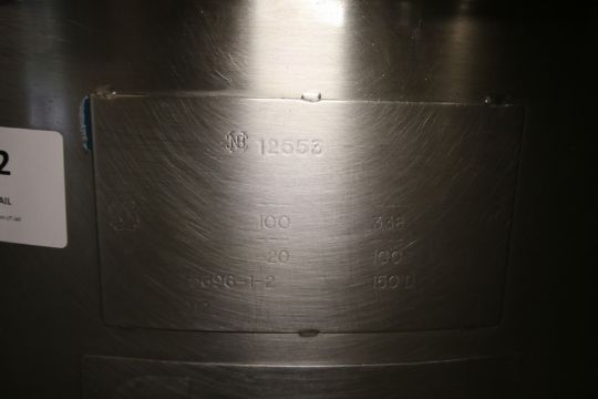 2012 Groen 150 Gallon S/S Jacketed Kettle, Model 150D, SN 75696-1-2, with Hinged Lid, 2" Threaded Bottom Connection, S/S Legs, Max WP 100 psi @ 338° F (INV#88562)(Located @ the MDG Auction Showroom in Pgh., PA)(Skidding, Handling, Loading & Site Management Fee: $500)