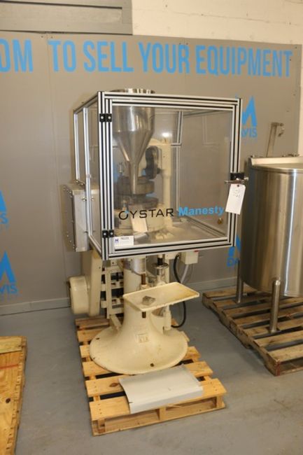 Manesty/Oyster Rotary Tablet Press, M/N B3B, S/N 277252, 16 station, 6.5 ton compression pressure, 5/8" max tablet diameter, 11/16" max depth of fill, keyed upper punch guides, single sided with feed frame and hopper, rated up to 42,000 tablets/hour throughput, with S/S Infeed Chute (INV#78123)(Located @ the MDG Showroom - Pittsburgh, PA)(Loading, Handling & Site Management Fee: $200.00 USD)