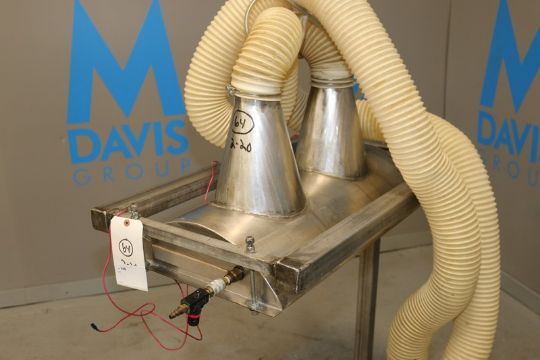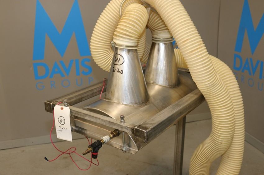 Dual Chute S/S Hood Unit, with (2) Collection Hoses, Hood Dims.: Aprox. 27-1/2" L x 16" W, Hood Sits Aprox. 37" H, Mounted on S/S Portable Frame (INV#66051) (LOCATED AT M. DAVIS GROUP AUCTION SHOWROOM--PITTSBURGH, PA) (Handling, Loading & Site Management Fee: $50.00)