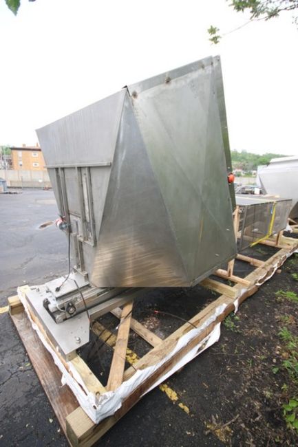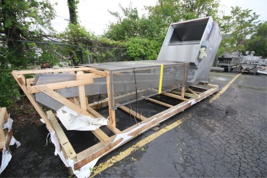 Aprox. 18' L Elevated S/S Cap Hopper, With 50" W x 6' L x 5' D Hopper, Conveyor with 4" Flights, SEW Drive Motor, (Machine on Shipping Skid Aprox. Overall Dim 18' L x 5' 9" W x 101" H) (INV#84685)(Located @ the MDG Auction Showroom in Pgh., PA)(Loading, Handling & Site Management Fee: $200)