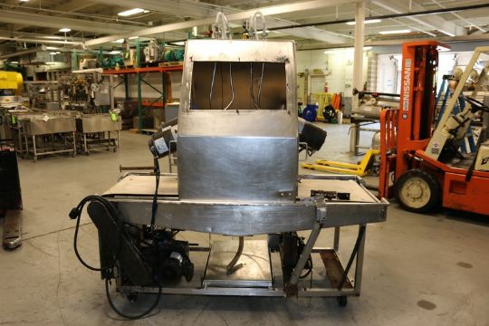 Bauer Machine Co. S/S Pan Greaser, with Aprox. 22-3/4" W Infeed/Outfeed Belt, with Drives & Hoses, Mounted on Portable S/S Frame (INV#66077)(LOCATED AT M. DAVIS GROUP AUCTION SHOWROOM--PITTSBURGH, PA) (Loading, Handling & Site Management Fee: $100.00)
