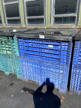 Lot of Assorted 10” Round Aluminum Pans,Aprox. (200) Pans with Aprox. 48” L x 45” W x 49” H Plastic Bin with Lid (INV#83418)(Located @ the MDG Auction Showroom 2.0 in Monroeville, PA)(Handling, Loading & Site Management Fee: $75.00 USD)