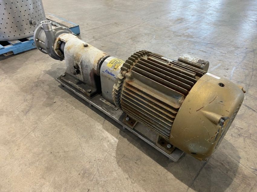 Fristam 50 hp Positive Displacement Pump,with Baldor 3540 RPM Motor, 208-230/460 Volts, 3 Phase, with Aprox. 2-1/2" Clamp Type Inlet/Outlet, with S/S Spare Head, Mounted on S/S Frame (INV#88870) (Located @ the MDG Auction Showroom 2.0 in Monroeville, PA)(Handling, Loading & Site Management Fee: $300.00 USD)
