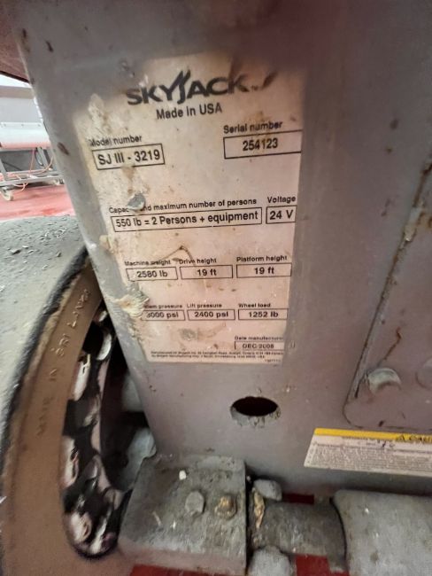 SKYJACK SCISSOR LIFT, MODEL SJ III 3219, S/N 254123  (LOADING FEE:  $150.00 USD) (LOADING WILL BE CONDUCTED BY BENKART RIGGING; PLEASE COORDINATE LOADING ARRANGEMENTS WITH BENKART RIGGING 724-776-1580) (LOCATED IN CALLERY, PA)