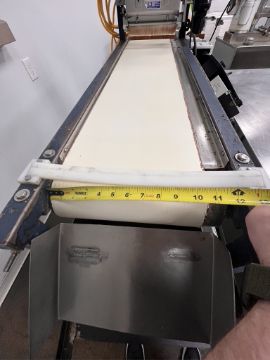 NUT TOPPING CONVEYOR FOR TART LINE, INCLUDED CHRISTY MACHINE COMPANY SIV-O-TOPPER DRY MATERIAL DISPENSER, MODEL 10"D-T-S, S/N 549-D-T-S, 10" BELT CONVEYOR (LOADING FEE: $150.00 USD) (LOADING WILL BE CONDUCTED BY BENKART RIGGING; PLEASE COORDINATE LOADING ARRANGEMENTS WITH BENKART RIGGING 724-776-1580) (LOCATED IN CALLERY, PA)