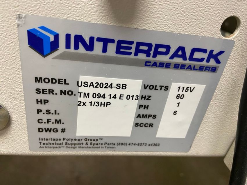 INTERPACK TOP CASE SEALER, M/N USA2024-SB, 115 VOLTS, 1 PHASE, MOUNTED ON PORTABLE FRAME (LOADING FEE: $250.00 USD) (LOADING WILL BE CONDUCTED BY BENKART RIGGING; PLEASE COORDINATE LOADING ARRANGEMENTS WITH BENKART RIGGING 724-776-1580) (LOCATED IN CALLERY, PA)