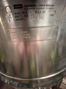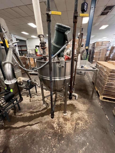 GROEN 60 GAL. S/S KETTLE, M/N N-60 SP, NAT’L BD: 49227, MAX. W.P. 100 PSI @ 338 F, WITH LIGHTNIN AGITATOR, MOUNTED ON S/S FRAME, INCLUDES 3/4 HP CENTRIFUGAL PUMP (LOADING FEE: $250.00 USD) (LOADING WILL BE CONDUCTED BY BENKART RIGGING; PLEASE COORDINATE LOADING ARRANGEMENTS WITH BENKART RIGGING 724-776-1580) (LOCATED IN CALLERY, PA)
