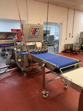 BULK BID FOR LOTS 48-49A, 2018 FORM AND FRYS FOLDING STUFFED PASTRY LINE, MODEL CHARLIE, S/N 18557, INCLUDES 2018 PISTON FILLER, S/N 18557-20, PREVIOUSLY RUNNING 175 PASTRIES PER MINUTE, RE-TOOLABLE FOR NEW PRODUCTS, INCLUDES RONDO PANER IN LOT 49A, PREVIOUSLY DOING RASPBERRY, CREAM CHEESE AND WALNUT STUFFED FOLDED PASTRIES, (LOADING FEE:  $2,500.00 USD) (LOADING WILL BE CONDUCTED BY BENKART RIGGING; PLEASE COORDINATE LOADING ARRANGEMENTS WITH BENKART RIGGING 724-776-1580) (LOCATED IN CALLERY, PA)