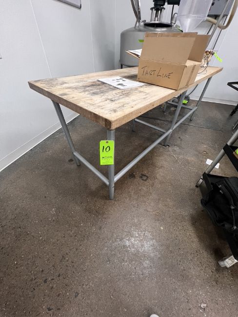 WOOD TOP BAKERY TABLE, 96 IN. L X 30 IN. W X 33 IN. H (LOADING FEE: $50.00 USD) (LOADING WILL BE CONDUCTED BY BENKART RIGGING; PLEASE COORDINATE LOADING ARRANGEMENTS WITH BENKART RIGGING 724-776-1580) (LOCATED IN CALLERY, PA)