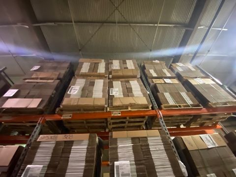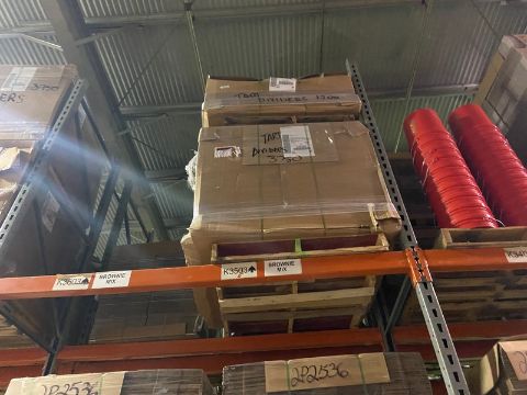 LOT OF ASSORTED CORRIGATED, CONTENTS OF TOP SHELF OF PALLET RACKING, INCLUDES SOME BAKING PANS (LOCATED IN HERMITAGE, PA) (LOADING FEE: $100.00 USD) (LOADING WILL BE CONDUCTED BY Rigging & Transportation Solution Inc.; PLEASE COORDINATE LOADING ARRANGEMENTS WITH Todd Shurtz 412-801-9661) (LOCATED IN HERMITAGE, PA)