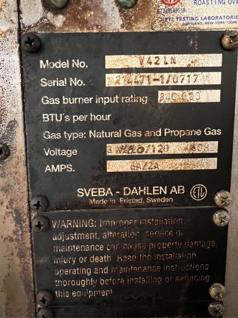 SVEBA DAHLEN RACK OVEN, MODEL V42LN, NATURAL GAS (LOADING FEE: $1750.00 USD) (LOADING WILL BE CONDUCTED BY Rigging & Transportation Solution Inc.; PLEASE COORDINATE LOADING ARRANGEMENTS WITH Todd Shurtz 412-801-9661) (LOCATED IN HERMITAGE, PA)
