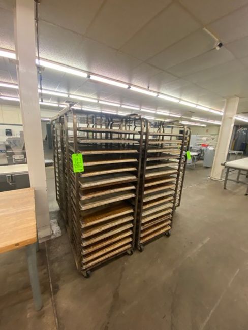 (5) PORTABLE DOUBLE SIDED BAKING PAN RACKS, MOUNTED ON CASTERS (LOCATED IN HERMITAGE, PA) (LOADING FEE: $50.00 USD) (LOADING WILL BE CONDUCTED BY Rigging & Transportation Solution Inc.; PLEASE COORDINATE LOADING ARRANGEMENTS WITH Todd Shurtz 412-801-9661) (LOCATED IN HERMITAGE, PA)