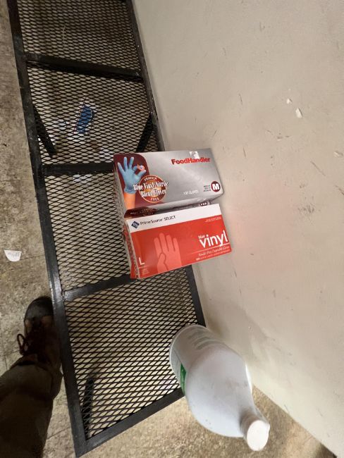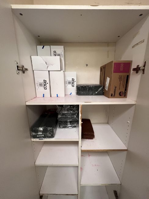 JANITORIAL SUPPLIES, INCLUDES HEAVY DUTY SCOURING PADS, SOAP PADS, DOUDLEBUG PADS, (3) DUNNAGE RACKS, VINYL GLOVES, ULINE PVC DOT KNIT GLOVES (LOADING FEE: $50.00 USD) (LOADING WILL BE CONDUCTED BY Rigging & Transportation Solution Inc.; PLEASE COORDINATE LOADING ARRANGEMENTS WITH Todd Shurtz 412-801-9661) (LOCATED IN HERMITAGE, PA)