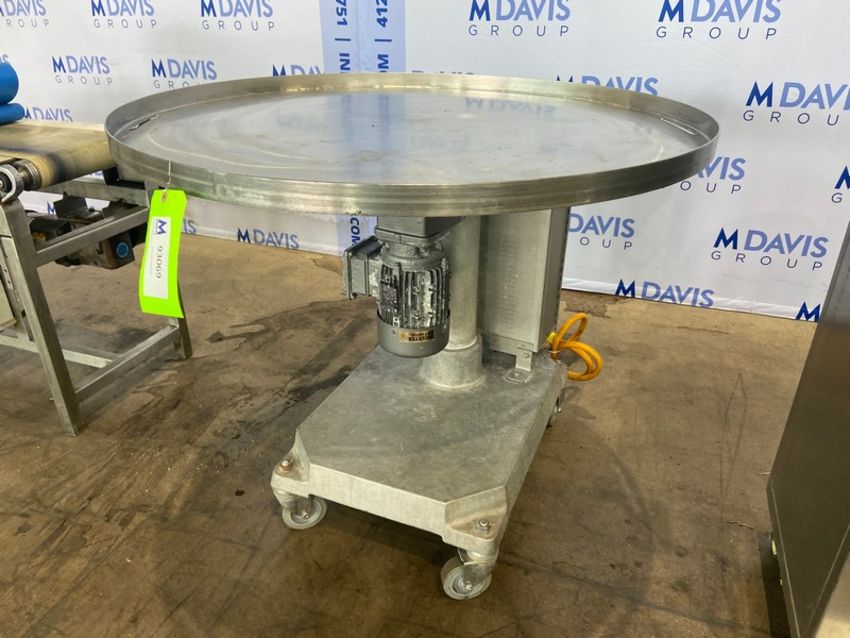 S/S Accumulation Table, with Aprox. 40" Dia. Table Top, with Bottom Mounted Motor, Mounted on S/S Portable Frame (INV#93069)(Located @ the MDG Showroom 2.0 in Monroeville, PA)(Handling, Loading & Site Management Fee: $50.00 USD)