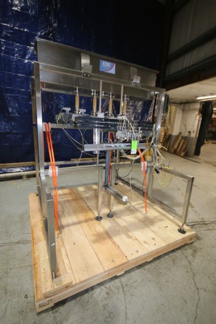 E - Pak Mach. Inc. 4- Station S/S Filler, SN0510-25158-208-004, with 65" L x 13" W x 15" H Filler Bowl, (4) Unibloc 1 hp/1725 rpm Positive Pumps, 208/230V, (Aprox. Overall Dims - 75" L x 75" W x 88"H (INV#93182)(Located @ the MDG Showroom v2.0 in Monroeville, PA)(Skidding, Handling, Loading & Site Management Fee: $800)