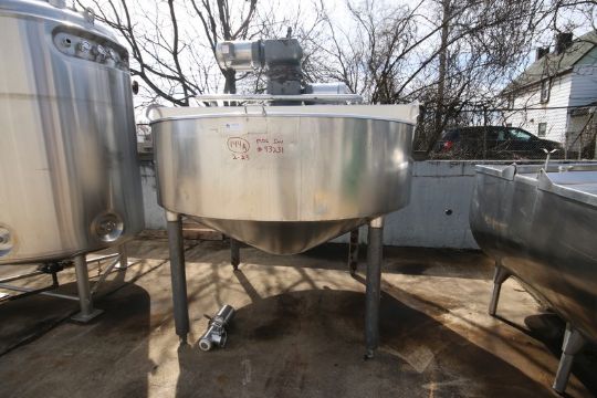 Chester Jenson Aprox. 600 Gallon Cone Bottom Jacket S/S Kettle, Size/Type M70N40C.C, SN 8210-P, with Dual Motion Agitator with (2) 3hp/1750 rpm S/S Clad Motors, with Scrape Surface & 3 Prop Agitator, Baffle, Spray Ball, (8) 1.5" & 2" Top Connections, 4" CT Bottom Connection with Air Valve, Painted Legs(INV#93231)(Located @ the MDG Showroom v2.0 in Monroeville, PA)(Handling, Loading & Site Management Fee: $200)