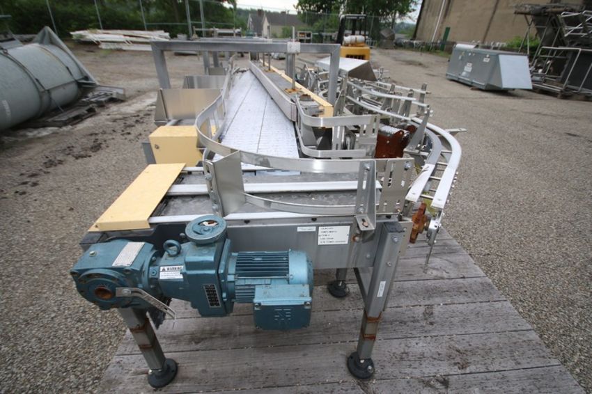 Century / Simplimatic 15" L x 22" W x 32" H Single Filer Conveyor with Plastic Rex Type Belt, SEW Drive Motors, Also Includes (2) Nercon 4.5" W S/S Curved Sections (INV#80619)(Located @ the MDG Auction Showroom in Pgh., PA)(Handling, Loading & Site Management Fee:$150)