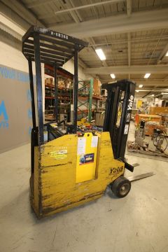 Yale 3,000 lb 24 Volt Stand Up Electric Forklift, Model ESCO30ABN24TE077 SN A824N06856v, 172" Max Height 3 Stage Lift, with Tilt, 42" L Forks, 88" Height, (Note: Forklift Does Run), (Note: Charger Not Included) (INV#92859) (Located @ the MDG Auction Showroom in Pgh., PA)(Handling, Loading & Site Management Fee: $50)
