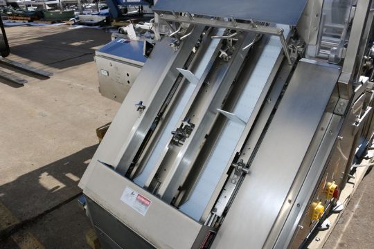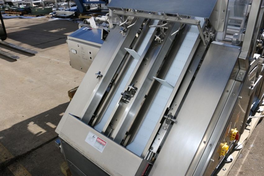 Raque S/S Tray Dispenser, 2-Lanes of Aprox. 8" W Outfeed Conveyor, with 4-Head Pick N' Place Vacuum Cups, Mounted on S/S Frame (NOTE: 1-Outfeed Lane Missing Belt--See Photographs) (INV#75149) (Located @ the MDG Auction Showroom in Pittsburgh, PA)(Rigging, Loading & Site Management Fee: $200.00 USD)