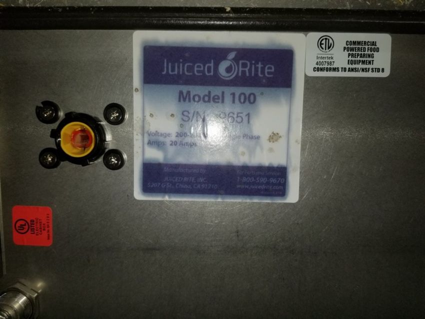 Juiced Rite Cold Press Hydraulic Juicer, Model JR100, 2017, 200-250 V, Single Phase, 20 A (Located Mississauga, Ontario, Canada) (Loading Fee $200)