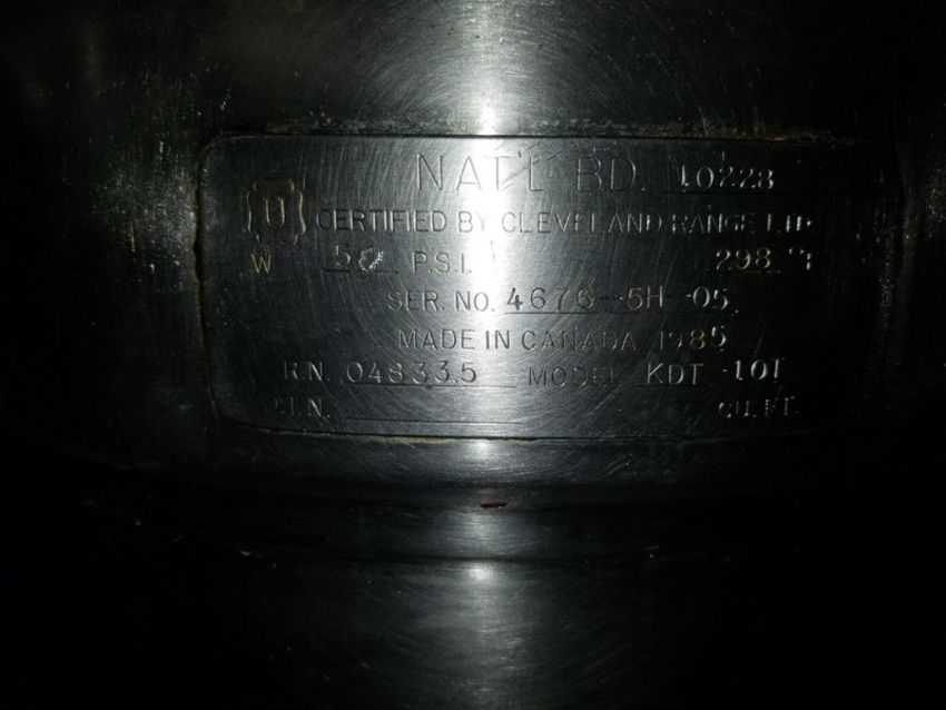 Cleveland Twin 10 USG Stainless Steam Kettles KDT-10T 4676-5H-05 (Located Mississauga, Ontario, Canada) (Loading Fee $100)