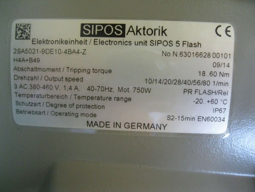 Sipos 5 Profitron 2SA5 Electric Rotary Actuator NEW (Located Springfield, NH)(Handling Fee $25) (NOTE: Packing & Palletizing Can Be Provided By Seller For an Additional Cost) (Located Springfield, NH)