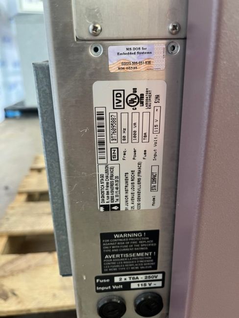 Stago STA Compact Coagulation Analyzer Stago STA Compact Coagulation Analyzer S/N# BT76095887 Freq. 60 Hz Power 1000 VA Fuse: T8A Model: STA COMPACT Input Volt. 115 V (INV#98621) (Located @ the MDG Auction Showroom 2.0 in Monroeville, PA) (Handling, Loading & Site Management Fee: $25.00 USD) STA Compact MDG Auction Showroom 2.0 in Monroeville, PA.