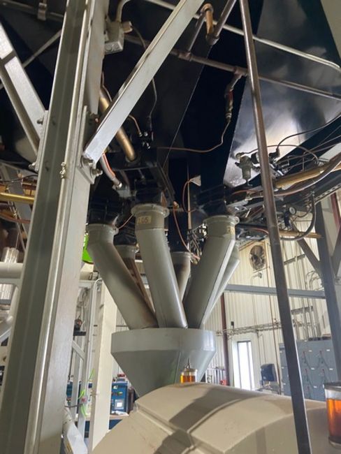 6-Station Distribution Bin, with Air Outlet Valves, Mounted On Steel Legs (RIGGING, LOADING, & SITE MANAGEMENT FEE: $4,350.00 USD)(LOCATED IN ONEONTA, N.Y.)