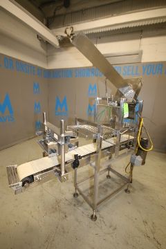 TD Sawvel S/S Automatic Inline Lidder, with 70" L x 8" W Belt Conveyor, 1/2 hp 1725 rpm Drive Motor, 115/230V, Mounted on S/S Frame (INV #92807) (Located @ the MDG Auction Showroom in Pgh., PA)(Handling, Loading & Site Management Fee: $75)