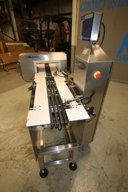 2011 Lock Weighcheck S/S Metal Detector/ Check-Weigher, Model CC2500 WEIGHCHECK-CHAIN, SN LIS1105-6947, 10 to 2500 grams Weight Range with Model MET30+ Metal Detector- 13" W x 5" H Product Opening, 70" L x 36" H Conveyor, with Touch Pad Controls, Reject Cylinders, (3) Omron JX VFD's, 230V (INV#92799) (Located @ the MDG Auction Showroom in Pgh., PA)(Handling, Loading & Site Management Fee: $100)