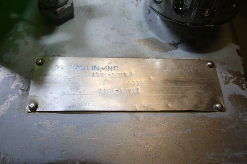 Gaulin Homogenizer, Model 15MR-8TBA, SN 1194-12747 max allowed working psi 8,000, with 3 hp/1725 rpm Motor, 230/460V with Controls, Mounted on Steel Table, Includes Spare Parts in Tote (INV#96713) (Located @ the MDG Auction Showroom in Pgh., PA)(Loading, Handling and Site Management Fee $100)