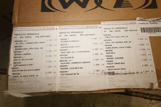 Assortment of NIB Valco Hot Melt Gluer Parts, Including (6) Hoses PN 780XX413, 780XX415, (3) Controllers PN 074XX085, (6) MXM Series Electric Valves PN 765XX136, 765XX223, Encoder Wheels PN 78XX743, Cable Connectors, Nozzles & etc (INV#92841) (Located @ the MDG Auction Showroom in Pgh., PA)(Handling, Loading & Site Management Fee: $100)