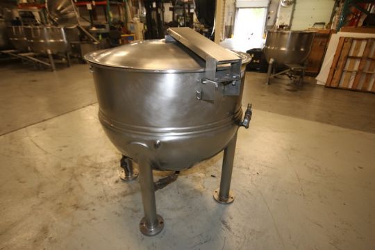 2012 Groen 150 Gallon S/S Jacketed Kettle, Model 150D, SN 75696-1-2, with Hinged Lid, 2" Threaded Bottom Connection, S/S Legs, Max WP 100 psi @ 338° F (INV#88562)(Located @ the MDG Auction Showroom in Pgh., PA)(Skidding, Handling, Loading & Site Management Fee: $500)