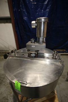 Aprox. 100 Gallon Cone Bottom Single Wall S/S Tank with Scrape Surface Vertical Agitator with 1 hp /1725/1450 S/S Drive Motor, 208/230/190V, (2) 2" CT Top Connections, 3" CT Bottom Connection, Sprayball (INV#96673) (Located @ the MDG Auction Showroom in Pgh., PA)(Loading, Handling and Site Management Fee $100)