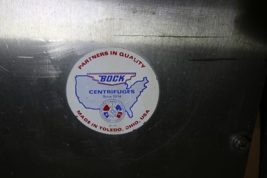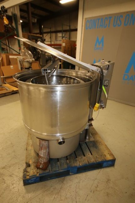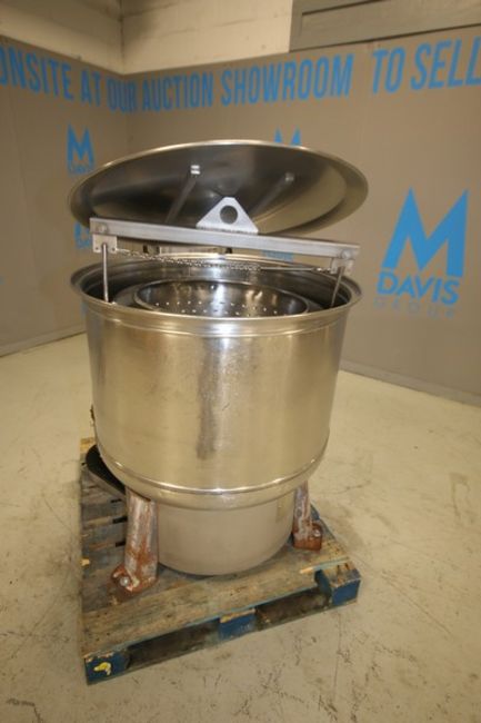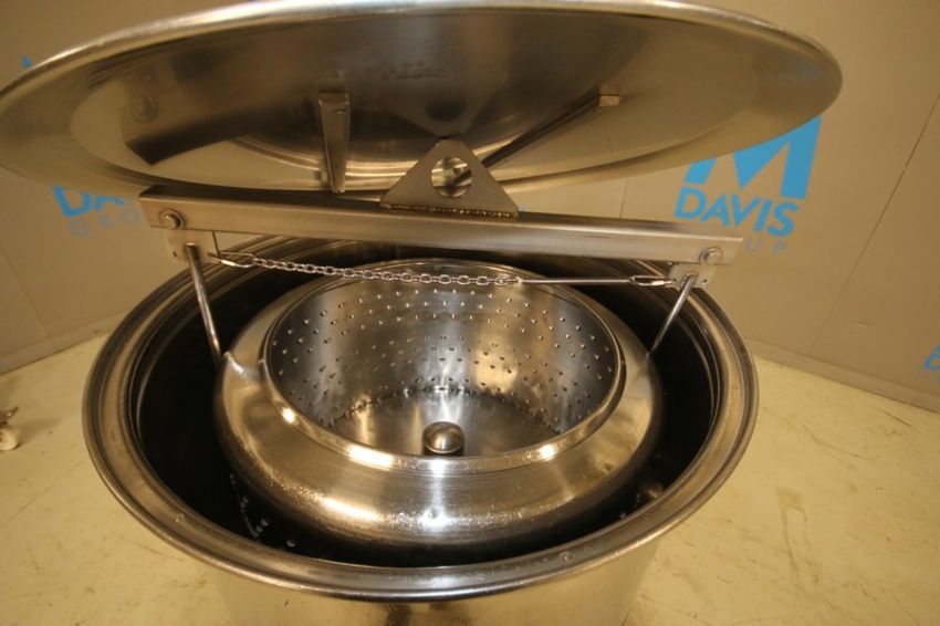 Bock Processing S/S Basket Centrifuge, Model FP-90-A, SN FP903222, with 34" W x 25" D Chamber with Hinged Lid, 30" Perforated Removable Bowl with Lift Attachment & Dolly, hp 1755/1420 rpm Motor, Controls, 208/230/460V, Skidded (INV #92811) (Located @ the MDG Auction Showroom in Pgh., PA)(Rigging, Loading & Site Management Fee: $75)