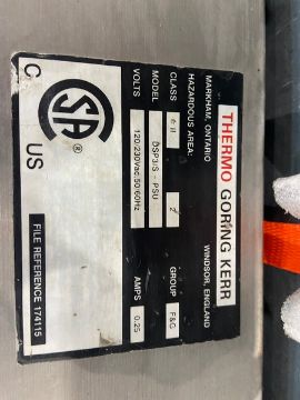 THERMO Goring Kerr S/S Metal Detector, M/N DSP3/S-PSU, Class II, 120/230 VAC, Opening Dims.: Aprox. 9-3/4" W x 7" H (Conveyor to Top) x 14" Deep, with Straight Section of Conveyor, Aprox. 50" L (Missing Belt) (NOTE: Professionally Skidded & Ready to Ship!) (INV#88830) (Located @ the MDG Auction Showroom 2.0 in Monroeville, PA)(Handling, Loading & Site Management Fee: $750.00 USD)