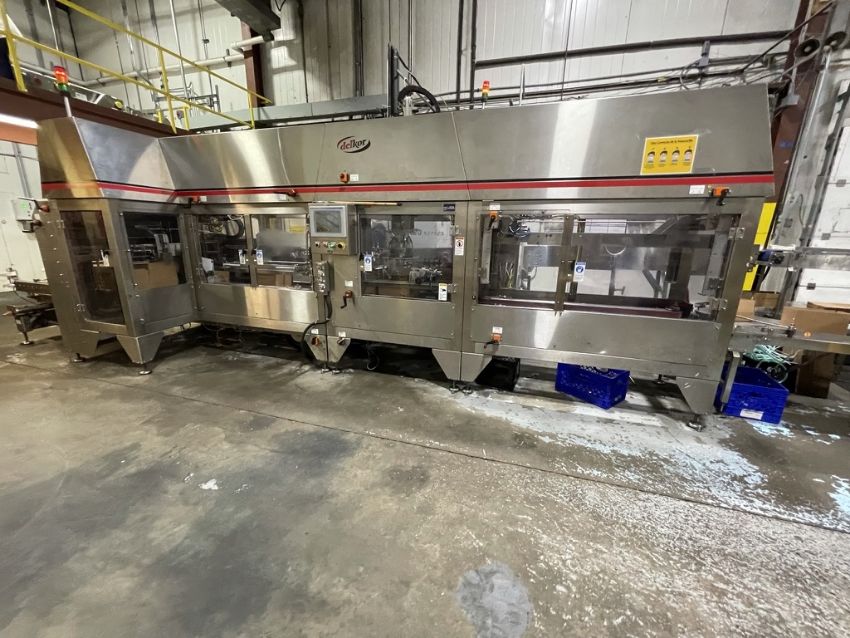 2007 Delkor Top Load Case Packer, M/N VCP-120, S/N SP-2267, 480 Volts, 3 Phase, with Infeed Conveyor, & Control Panel (INV#83777)(Located @ the MDG Auction Showroom 2.0 in Monroeville, PA)(Handling, Loading & Site Management Fee: $1,200.00 USD)