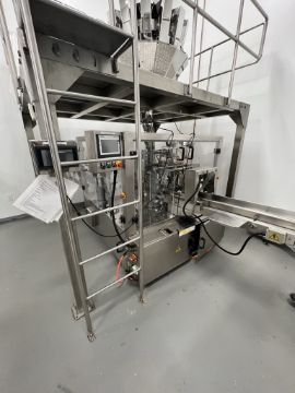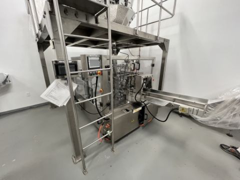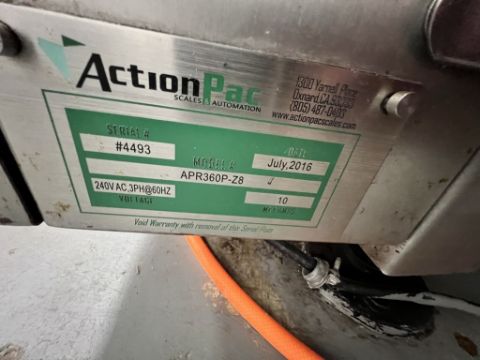2016 ACTIONPAC PREMADE AUTO-POUCH FILLER, MODEL APR360P-Z8, S/N 4493, APPROX. 45 PPM, BAG SIZE RANGES: 120-210 MM X 75MM-125 MM X (LENGTH X WIDTH), SIEMENS SIMATIC S7-200 SMART CONTROLLER, 230 / 3 PHASE / 60 HZ (BAGGER DOORS NOT INCLUDED), INCLUDES 14-HEAD ROTARY BUCKET SCALE (1 BUCKET MISSING) AND OPERATOR PLATFORM (Handling, Loading & Site Management Fee: $1,500.00 USD)