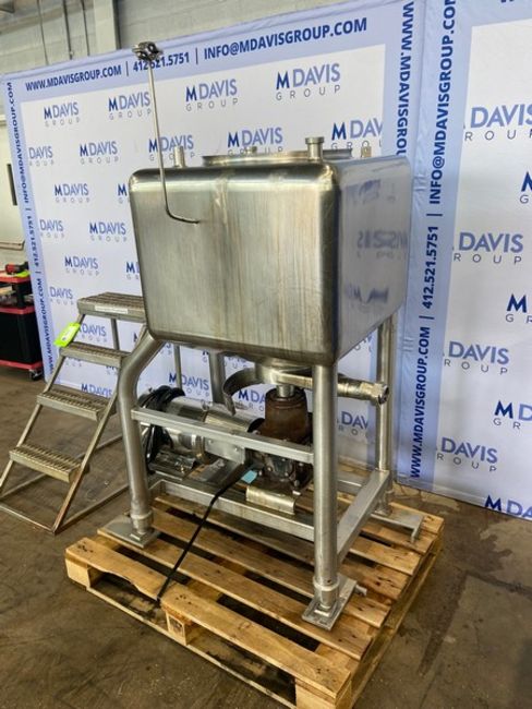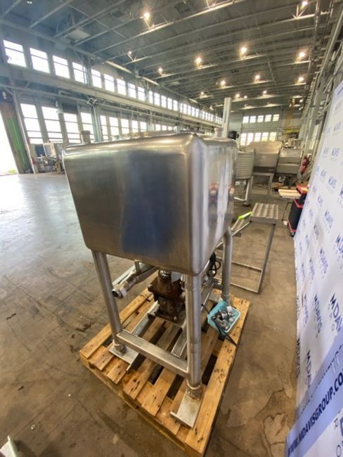 Aprox. 40 Gal. S/S Liquifier,Internal Dims.: Aprox. 24" L x 24" W x 18" H, with 10 hp S/S Clad Motor, 1725 RPM, Mounted on S/S Frame (NOTE: Missing Lid) (INV#95477)(Located @ the MDG Auction Showroom 2.0 in Monroeville, PA)(Handling, Loading & Site MGMT Fee: $300.00 USD)