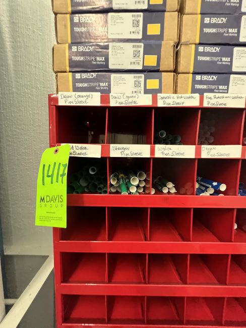 PARTS CABINET WITH CONTENTS, INCLUDES SAFETY STICKERS, CAUTION STICKERS / TAPE, TOUGH STRIPE MAX FLOOR MARKERS AND MORE
