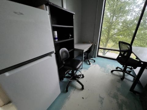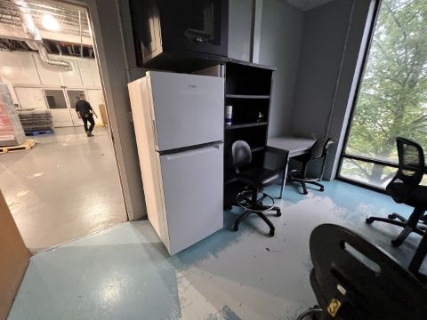 CONTENTS OF OFFICE, INCLUDES DESKS, CHAIRS, TABLES, REFRIGERATOR AND MORE