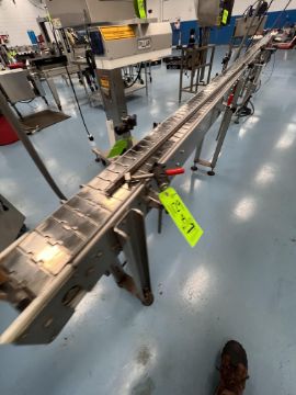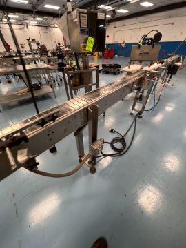 STRAIGH SECTION OF S/S CONVEYOR, APPROX. 26 FT. LONG, INCLUDES DRIVES AND VARIABLE SPEED CONTROLLERS (RIGGING AND LOADING FEE $350)