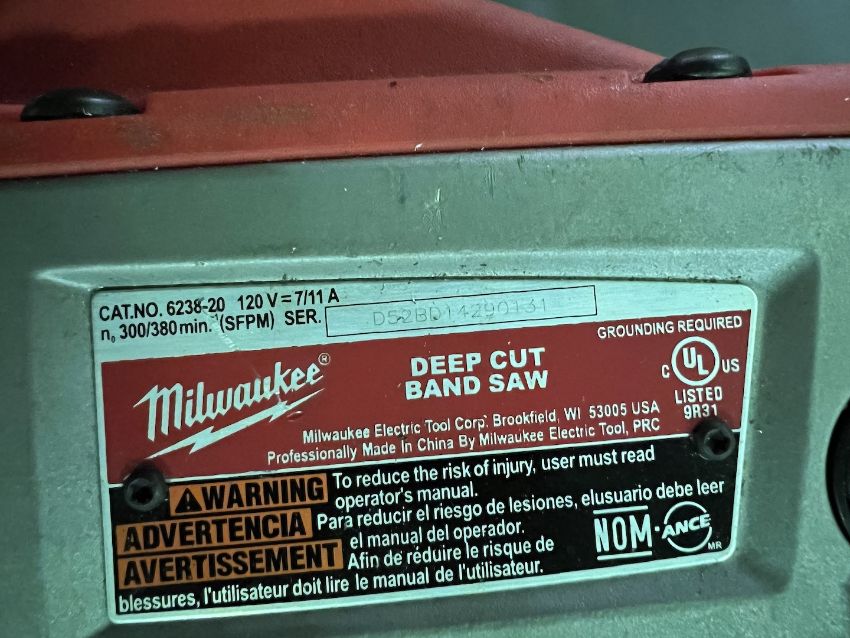 MILWAUKEE DEEP CUT BAND SAW, MODEL 6238-21, S/N D52BD14290131