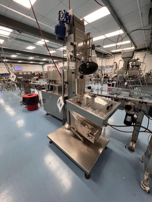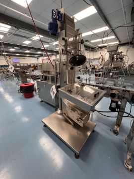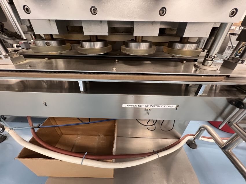 CAP PLUS TECHNOLOGIES STRAIGHT LINE 8-SPINDLE CAPPER, MODEL AC 8, S/N 0913 003, INCLUDES ELEVATING CAP HOPPER
