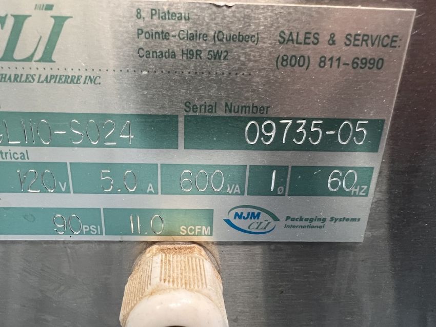 NJM CLI CL-110 COTTONER, MODEL CL110-SO24, S/N 09735-05, 120 V (112 Technology Dr., Coraopolis, PA 15108) (RIGGING AND LOADING FEE: $550)