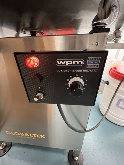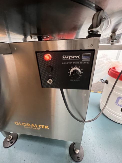 GLOBALTEK APPROX. 48 IN. S/S ROTARY ACCUMULATION TABLE, MODEL ROT-48EUY, S/N 2248EUY009, BODINE ELECTRIC CO WPM VARIABLE SPEED DRIVE, 120 V (112 Technology Dr., Coraopolis, PA 15108) (RIGGING AND LOADING FEE: $200)