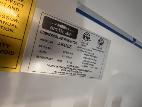 ARCTIC AIR 2-DOOR S/S REFRIGERATOR, MODEL AR49EZ, S/N H21169493, BATCH A2019 (RIGGING AND LOADING FEE $200)