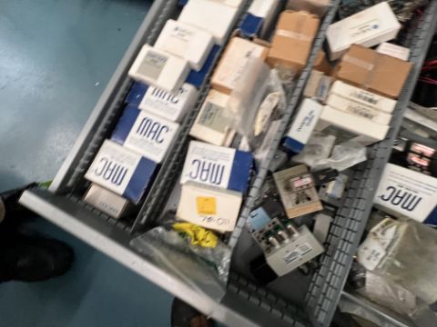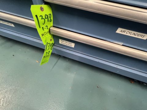 ASSORTED PNEUMATIC SPARES, INCLUDS AIR CYLINDERS, VALVES, SOLENOIDES, CONTENTS OF 2 SHELVES