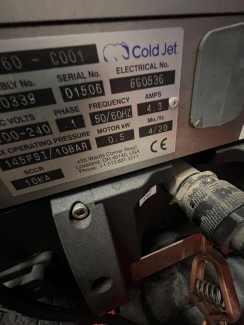 2020 COLD JET DRY ICE BLASTING MACHINE, MODEL PCS 60 - C001, S/N 01506, 100 - 240 V, 1 PHASE